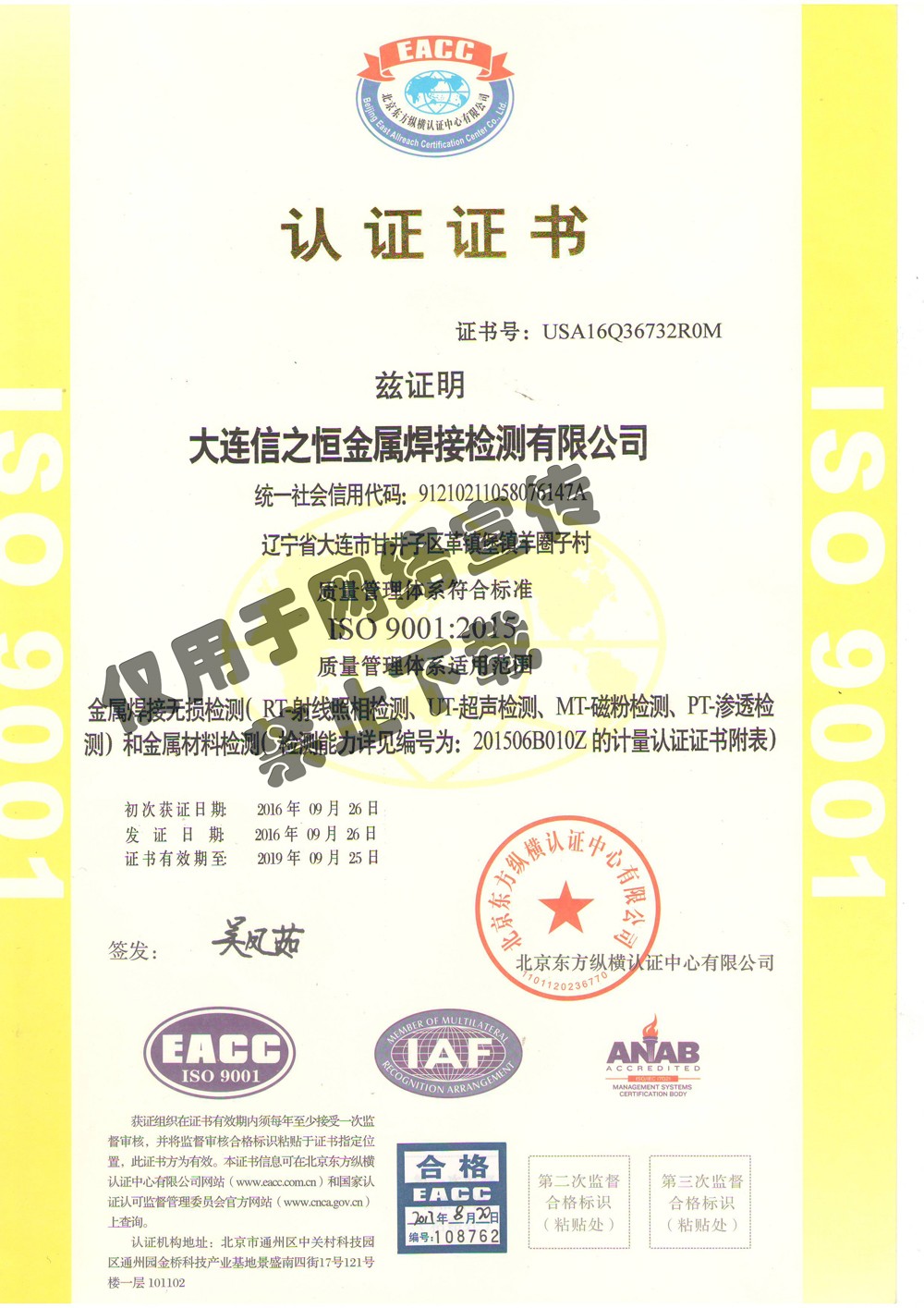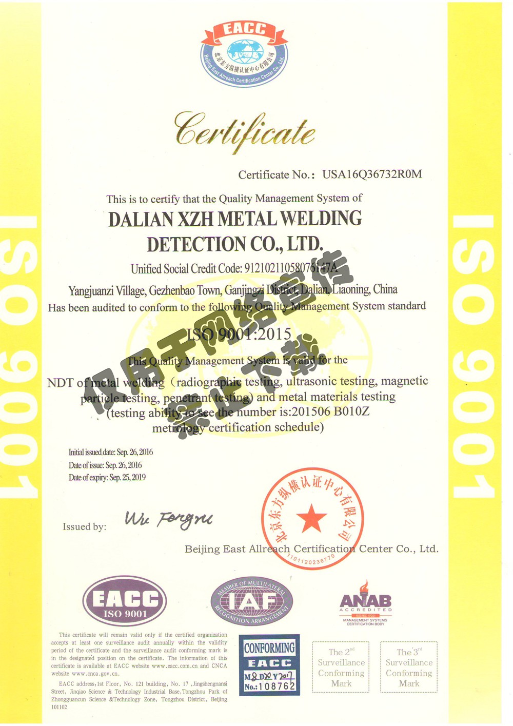 質(zhì)量管理體系認(rèn)證證書(shū)